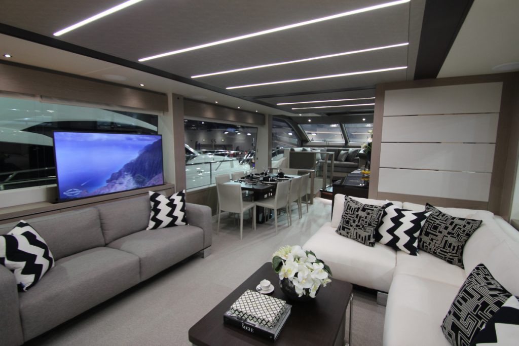 Christopher Head, Sales Director of Sunseeker London, went on to say ‘it is so important that we have these strong brand partnerships. Boat Shows are some of the most important dates in our calendar, and during that time we need to showcase everything we do to the nth degree. AJI’s design team are fabulous at understanding what works on our boats. Their attention to detail and flare means they get it right every time.”